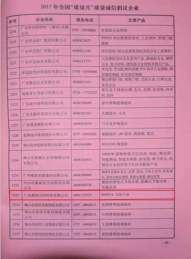 在2017年全国“质量月”质量诚信倡议企业公告中,康纳卫浴获评“全国质量诚信标杆典型企业”,并在《中国消费者报》、《中国质量报》、《2017年全国“质量月”企业质量诚信倡议书》等权威纸媒上进行图文并茂地宣传展示。此项殊荣,是中国质量检验协会对康纳卫浴具有社会责任感、讲诚信、重质量的高度肯定,这也将对康纳卫浴起到社会各界的监督作用。